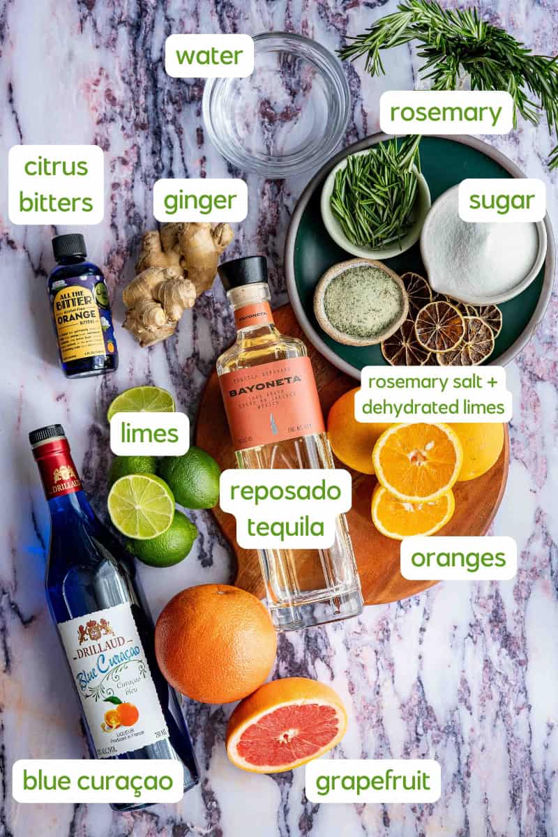 - Garnish + serve. Garnish each drink with a fresh sprig of rosemary and a dehydrated lime wheel. Serve immediately.rosemary sprig, dehydrated lime wheel