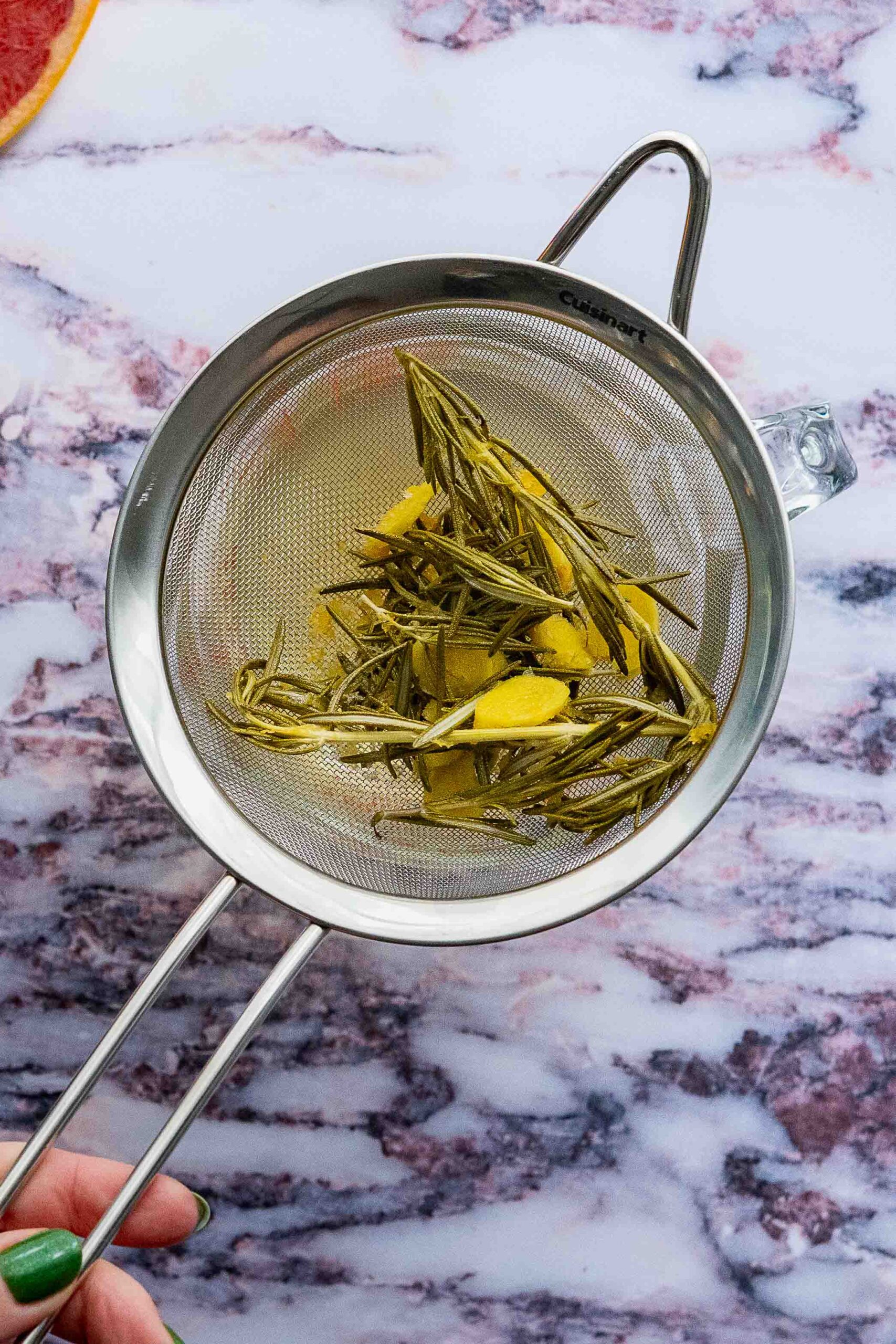 1: Heat water in a small saucepan over medium-low heat, then add the granulated sugar and stir until completely dissolved. Add in the ginger and rosemary and simmer at medium-low heat for 10-15 minutes.